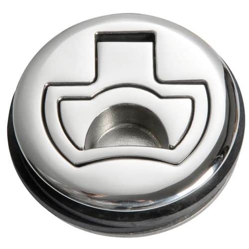Alzapagliolo antivibrante in acciaio inox AISI 316 lucidato a specchio con maniglia retrattile a molla, controflangia per il fissaggio.