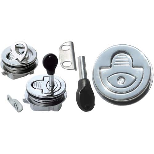 Alzapagliolo e chiusura portelli tondo in ACCIAIO INOX AISI 316 lucidato a specchio completo di chiave e ghiera di fissaggio.Adatto per compartimenti e vani impermeabili.