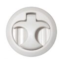 Alzapagliolo in nylon bianco, con maniglia a molla e fermo a scatto.Completo di squadretta di battuta in acciaio inox, anelli in gomma di spessore mm. 3/6/9, foro Ø mm. 50, utilizzabile per spessori da mm. 11 a mm. 15.