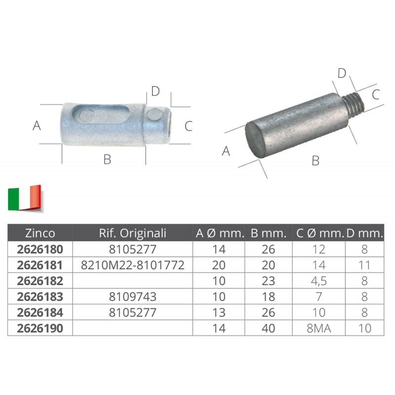 | Tipo | BAROTTO AIFO – VM Ø MM.14 X 31, BAROTTO AIFO 8101772 – 8210M22, BAROTTO AIFO 8109743 LOMBARDINI, BAROTTO AIFO 8105277 – LOMBARDINI |