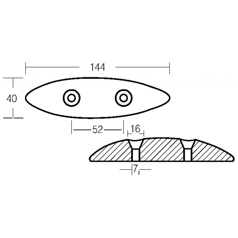 Anodoovale, in zinco, per flaps, mm. 145x40x20