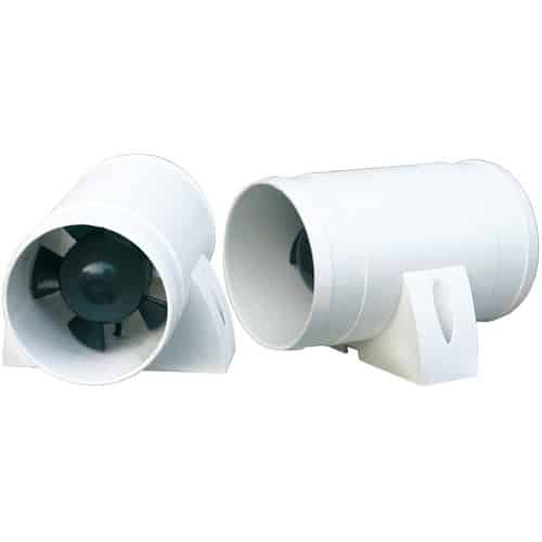 Aspiratore – aeratore realizzato in plastica  rinforzata di colore bianco o nero, indicato per la ventilazione ed il raffreddamento di cabine e vani motore.