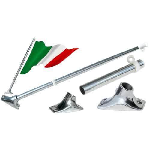 Asta portabandiera in ACCIAIO INOX AISI 316 a sezione conificata. Completa di anelli fissa bandiera in pvc e base in ACCIAIO INOX ad incasso.