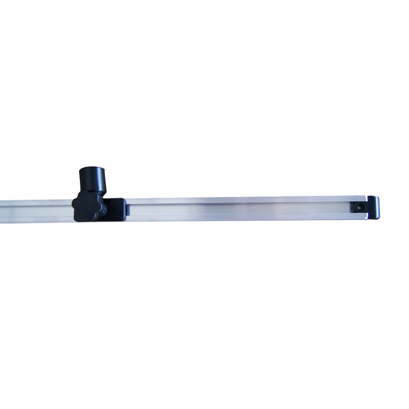 Attacco scorrevole per capottine e tendalini universali, rotaia in lega leggera da cm. 105×2,5 largh. completa di cursore, supporto, fermo e terminali in plastica, montaggio a parete