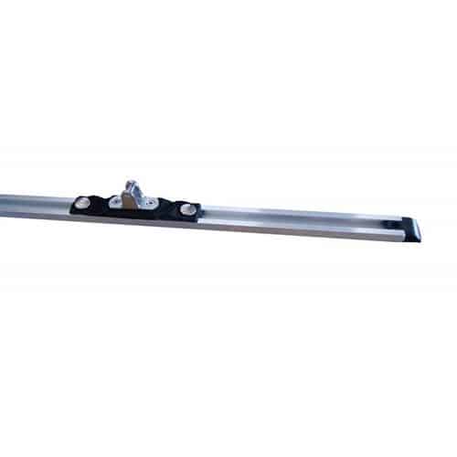 Attacco scorrevole per capottine e tendalini universali con rotaia in lega leggera completa di cursore, supporto, fermo e terminali in plastica.