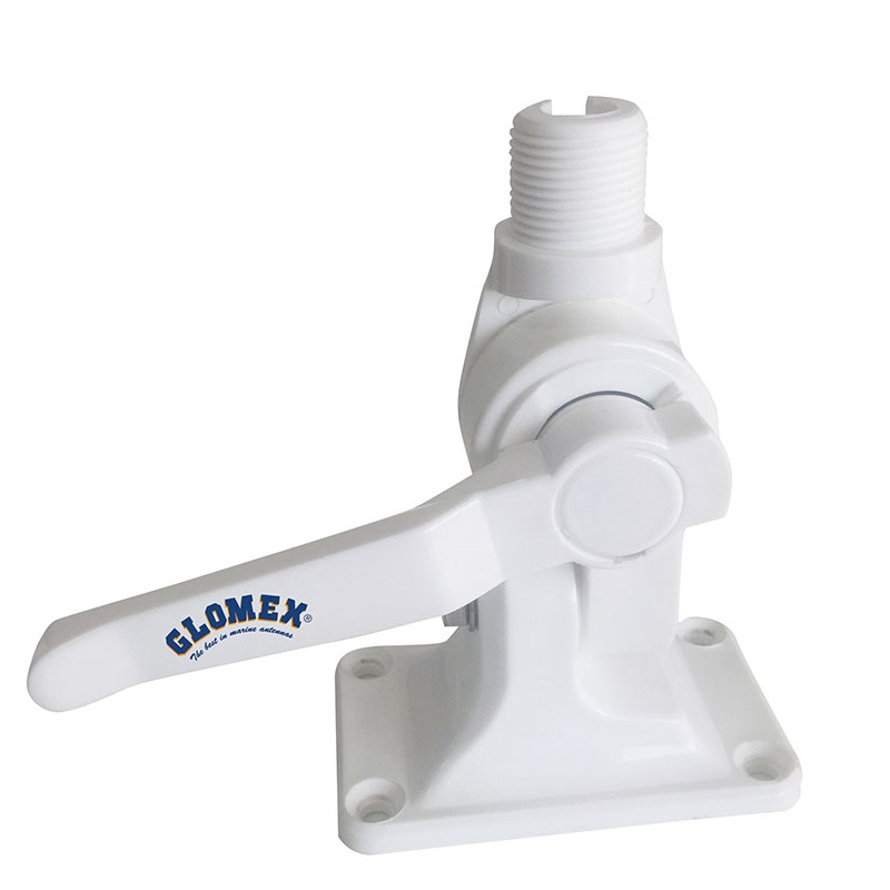 Base a doppio snodo in nylon rinforzato resistente ai raggi UV, con bloccaggio a leva e passaggio cavo e passacavo per accesso sottocoperta incorporato nella base.