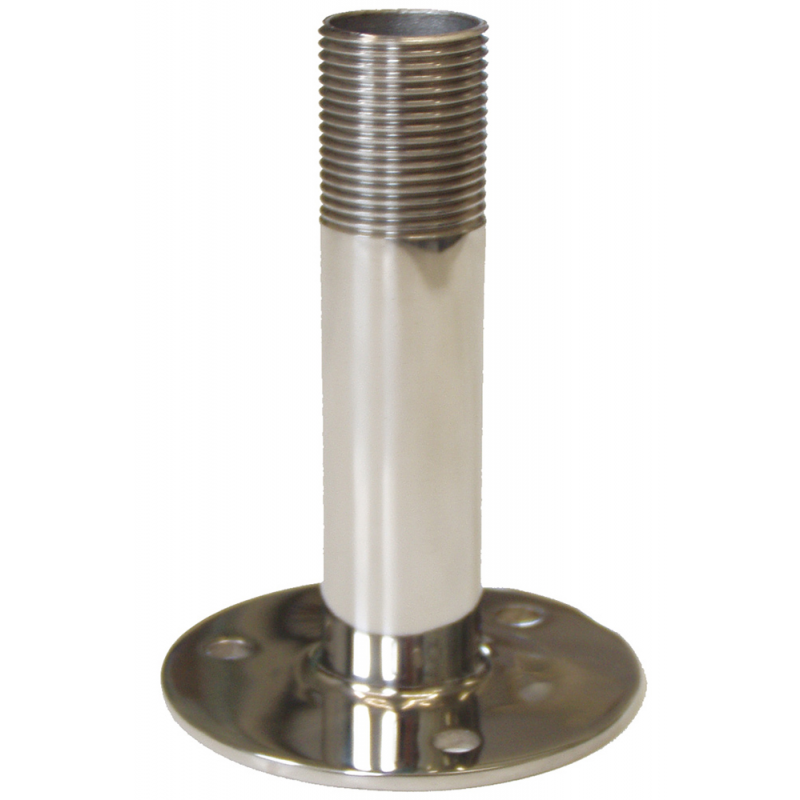Base fissa in acciaio inox. Dim. altezza mm. 100, base Ø mm. 80. Filetto universale Ø 25