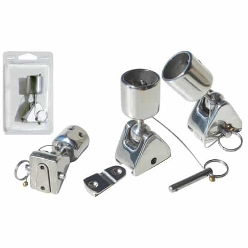 Base sfilabile in ACCIAIO INOX AISI 316 da 25 mm per capottina. Rende possibile la rimozione della capottina/tendalino semplicemente sfilando la spina autobloccante e lasciando la superficie priva d’ingombri.