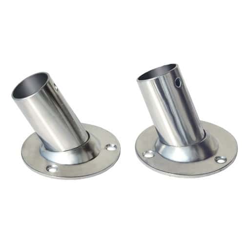 Base tonda a 60 gradi realizzata completamente in acciaio inox AISI 316 per tubi con diametro 22 e 25mm.