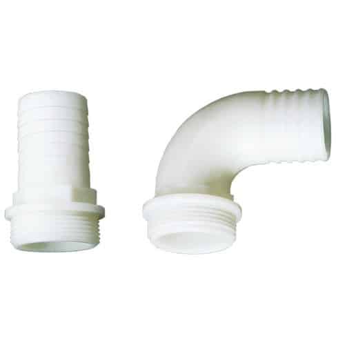 Bocchettone a 90° da 1” 1/4 con portagomma per tubo con diametro di 38 mm adatto per serbatoio acqua