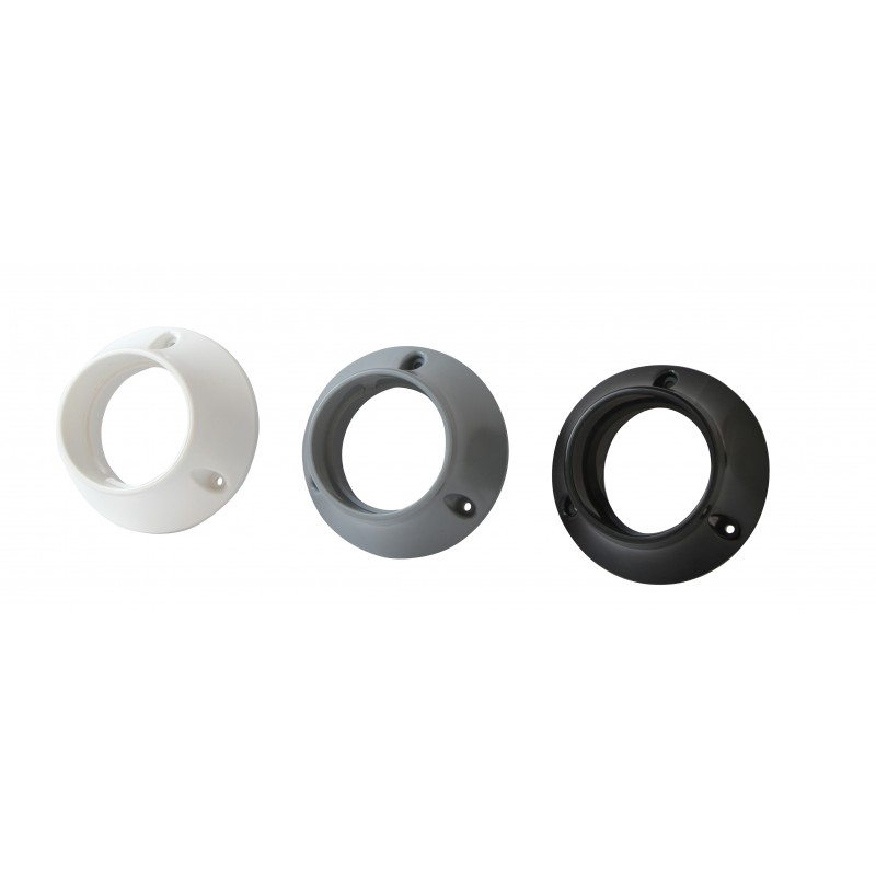 Boccola in plastica, filettata fissaggio con 3 viti, per collegare il tubo passacavo con diametro interno 50 mm.Colore boccola:bianco,nero e grigio.