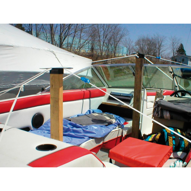 Borchia in PVC nero con inserto dimemsione 50 x 100mm. Permette di proteggere il telo quando si inserisce un palo di supporto, onde evitare il ristagno dell’acqua. Le 4 aperture permettono il passaggio della reggetta per il fissaggio sull’imbarcazione. Può essere usata anche come base per il palo di supporto.