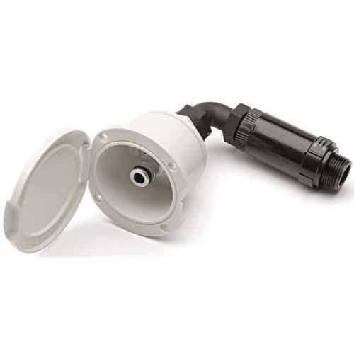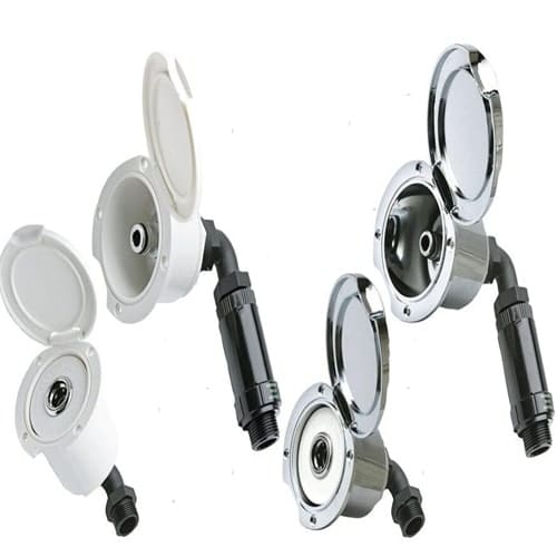- Box uscita acqua: con innesto rapido tipo giardinaggio per lavaggio ponte e raccordo a gomito da 3/4″ da collegare al circuito d’acqua di bordo.