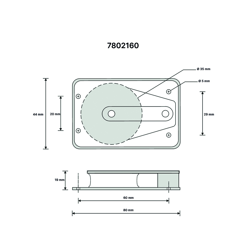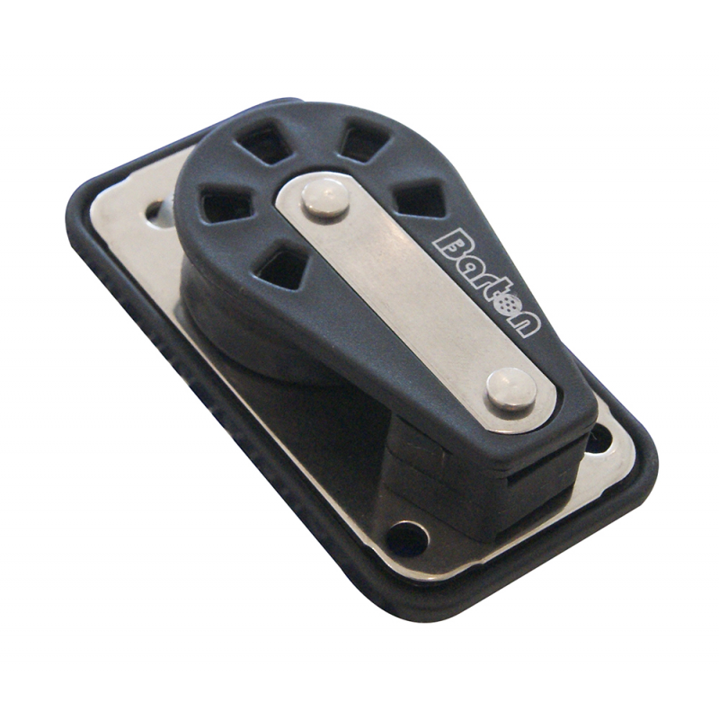 SERIE 2 – Bozzello singolo con piastra per montaggio in piano, Ø cima max mm. 8, max carico di lavoro kg. 370 carico di rottura kg. 740, dimensioni puleggia mm.35 x 12, lunghezza mm. 80
