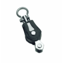 SERIE 0 – Bozzello singolo con occhio girevole e arricavo, Ø cima max mm. 5, max carico di lavoro kg. 275, carico di rottura kg. 550, dimensioni puleggia mm.20 x 8, lunghezza mm. 66.7
