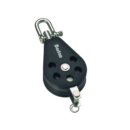 SERIE 3 – Bozzello singolo girevole con arricavo, Ø cima max mm. 10, max carico di lavoro kg. 400, carico di rottura kg. 800, dimensioni puleggia mm. 45 x 13, lunghezza mm. 111