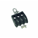 SERIE 1 – Bozzello triplo con occhio girevole e arricavo, Ø cima max mm. 8, max carico di lavoro kg. 355 carico di rottura kg. 710, dimensioni puleggia mm.30 x 12, lunghezza mm. 84