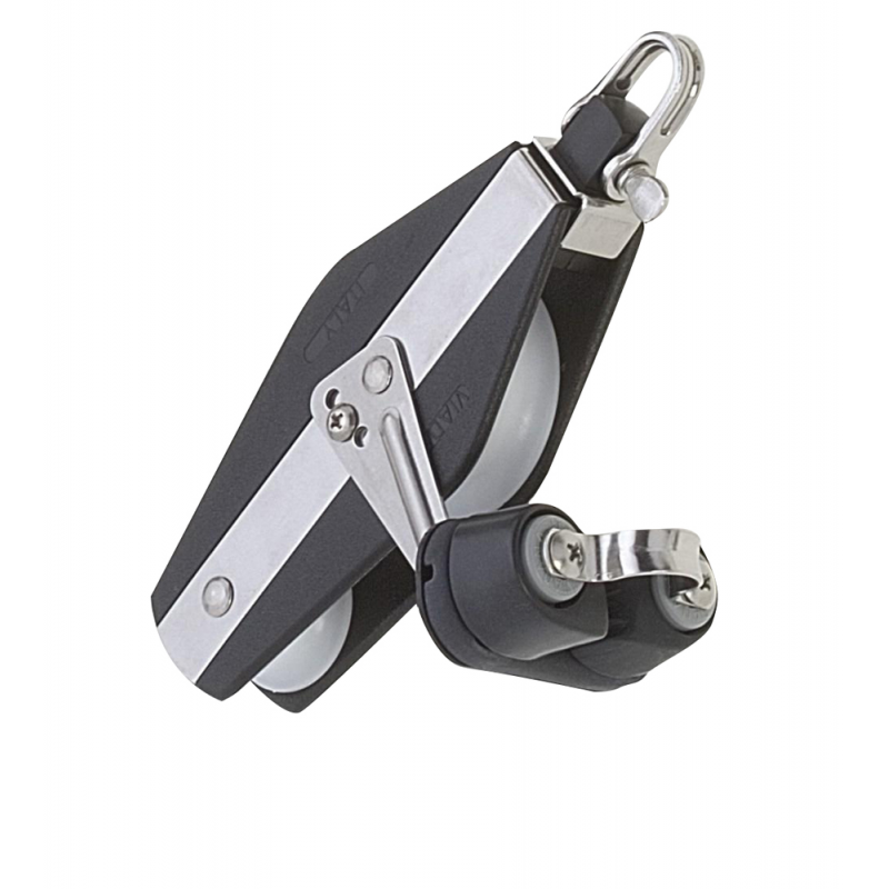 Bozzello violino a due pulegge con sfere con strozzascotte, carico di lavoro kg.230 carico di rottura kg.950.