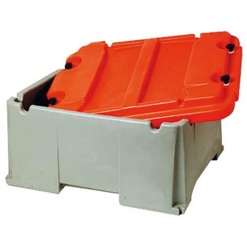Cassetta portabatteria completa di coperchio progettata per contenere le batterie di grande capacità, da 120 A·h a 220 A·h a norma DIN di qualsiasi marca.