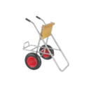 Portata fino a 150 HP. Tubo Ø mm. 30, ruote in gomma gonfiabili Ø mm. 350, porta serbatoio tavoletta in legno mm. 500 x 250.