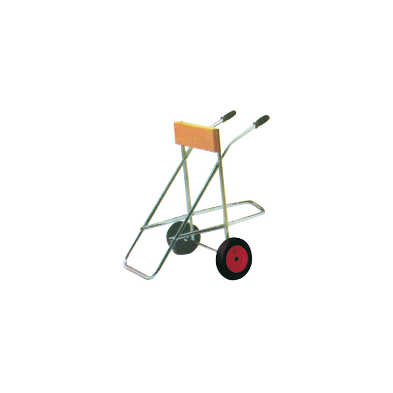 Cavalletti portamotore massimo 25 HP pieghevoli con ruote in gomma gonfiabili Ø mm.250 e portaserbatoio, tavoletta in legno largh. mm. 320 x 145, altezza mm. 900, portata massima Kg. 50.