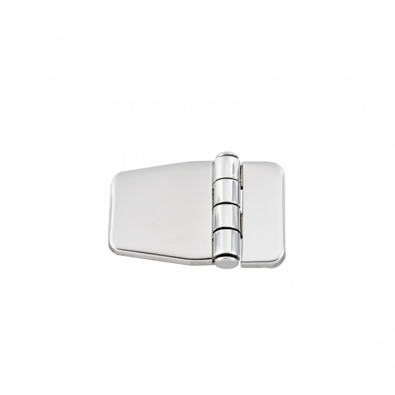 Cerniere con copertura in acciaio inox AISI 316 spessore mm.2. Tramite il nastro biadesivo 3m vhbpremontato sulla copertura stessa, permette di nascondere le viti della cerniera dopo il montaggio, congrande effetto estetico. dim. mm. 56×37