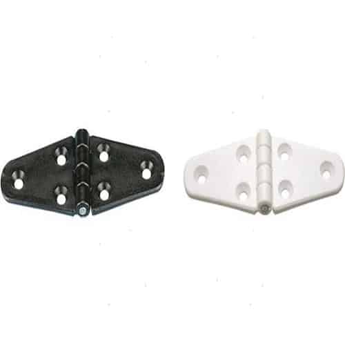 Cerniera a doppia ala in plastica rinforzata di colore bianco o nero.