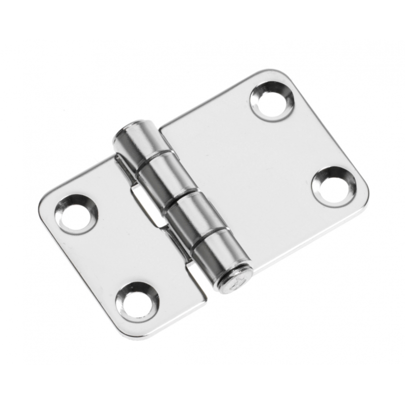 Cerniera lucidata a specchio in acciaio inox AISI 304. Spessore mm. 2, perno Ø mm. 9 intestato