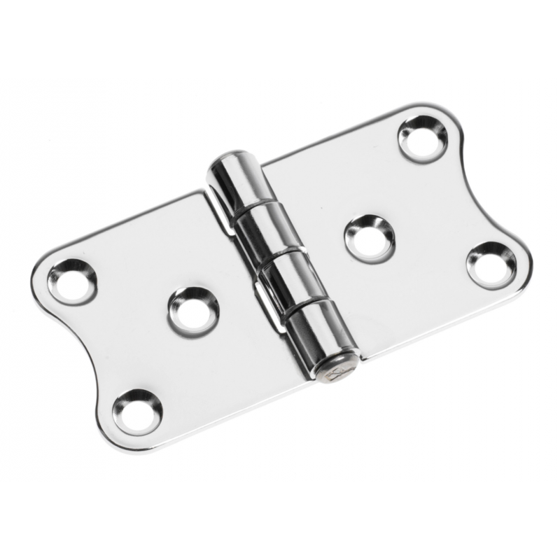 Cerniere in acciaio inox AISI 316 lucidate a specchio, spessore mm. 2, perno Ø mm. 9 intestato.