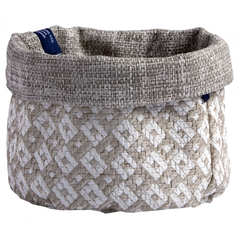 Cestini in tessuto poliestere reversibili ed impermeabili, resistenti al sole e facili da pulire. Interamente realizzati a mano, possono essere utilizzati come porta creme e saponi o in cucina e a tavola come cestino per il pane, portafrutta o più semplicemente come svuota tasche.