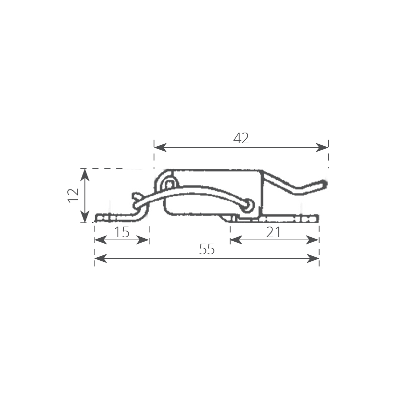 Chiusura a leva in acciaio inox senza foro per lucchetto adatto per sportelli e vano porta oggetti.