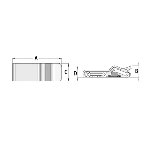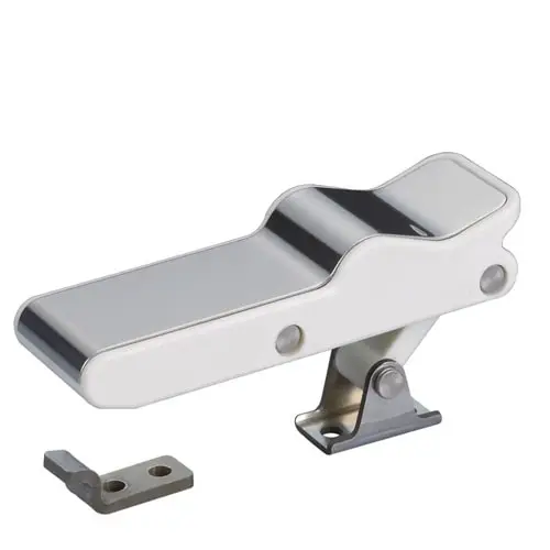 Chiusura a leva eccentrica per gavoni in termogomma elastica con frontale in acciaio inox lucidato a specchio, escursione elastica 6 mm.