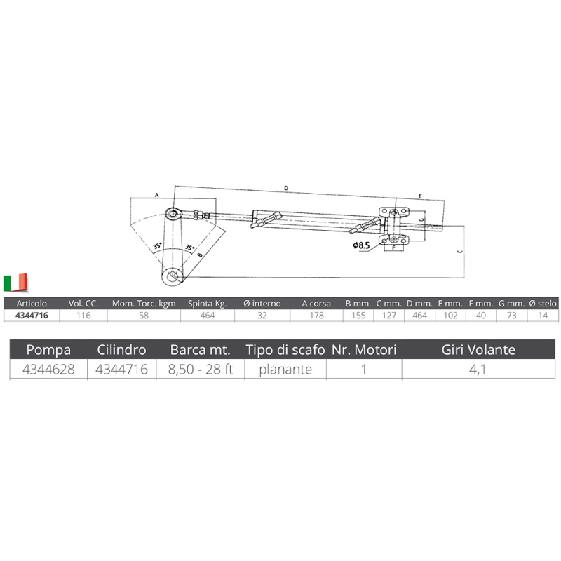 Cilindro in alluminio, bilanciato (uguale numero di giri da mezza corsa a fine corsa). Raccordi da 3/8.