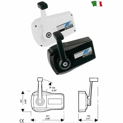 Comando a leva singola progettato per l’applicazione a parete laterale destra o sinistra. Consigliato per motori fuoribordo, entrobordo e gruppi poppieri provvisti di invertitore idraulico. E’ dotato di un dispositivo che permette, con una semplice manovra, di azionare il gas, con l’invertitore in posizione folle.