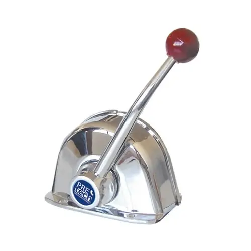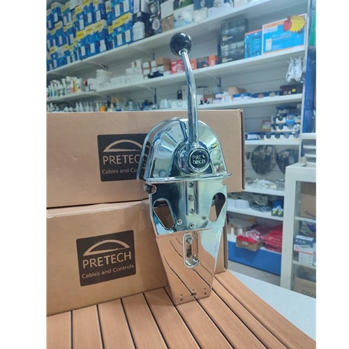 Comando bileva PRETECH per singolo motore a doppia azione, per il controllo di gas e marce su motori entrobordo ed entro/fuoribordo con leva e corpo in lega inossidabile cromata.