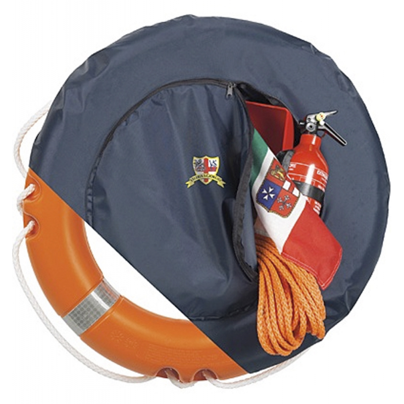 Contenitore per salvagente anulare e borsa integrata con cerniera per contenere la dotazione di sicurezza o altri accessori