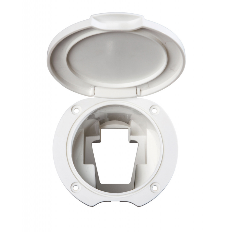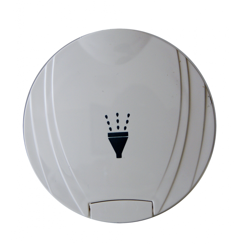 Contenitore per doccetta in PVC bianco ad incasso per montaggio orizzontale o verticale, per doccette articoli 2424202/204/216. Dimensioni foro incasso Ø mm 73, profondità mm 63, Ø esterno mm 98.
