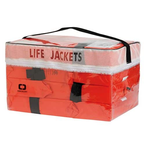 Contenitore in PVC trasparente per 4 giubbotti 100 N include retina traspirante per l’aereazione.