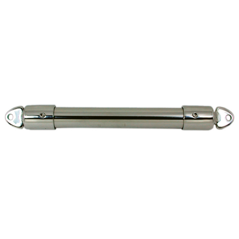 Coppia di giunti a cappuccio in acciaio inox AISI 316 con occhio regolabile. Permettono di tendere la capottina con escursione di 50 mm.
