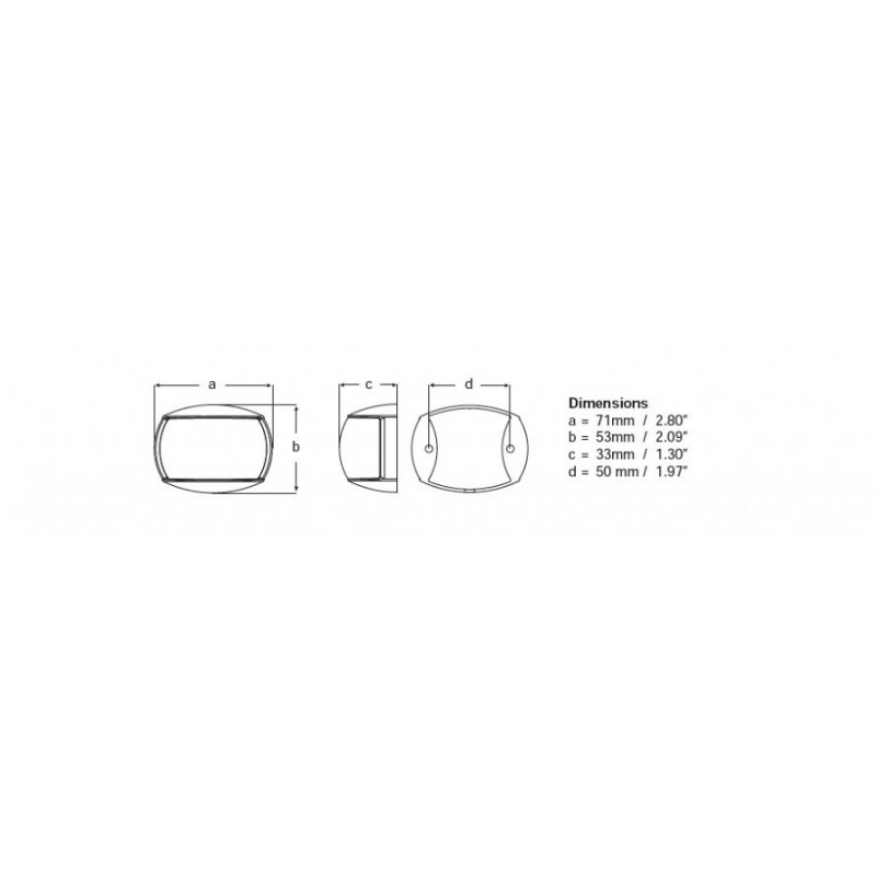 Fanali di navigazione per imbarcazioni fino a 50 metri.Cassa e lenti stagne IP67 in materiale antishock resistente a corrosione e raggi UV. Consumo ultra basso, precablati con cavi marini, Multivolt 9-33V, dotati di circuito di protezione per picchi di tensione e inversione di polarità. Distanza minima visibile 2 NM. Certificati R.I.Na., CE(EMC), IMO-COLREG, USCG, BSH e ABYC. Rif. Originale 2LT 980 520-861