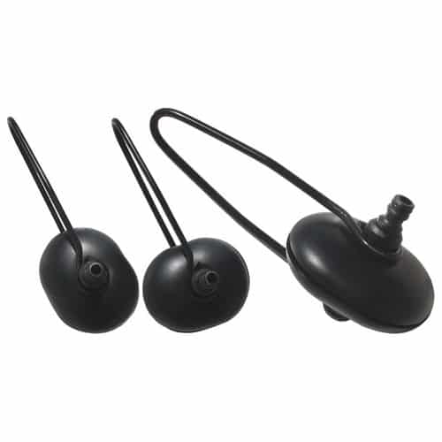 Cuffie ovali, adatte anche a piedi con fessure di raffreddamento estese. Completo di attacco a scatto per tubo acqua.