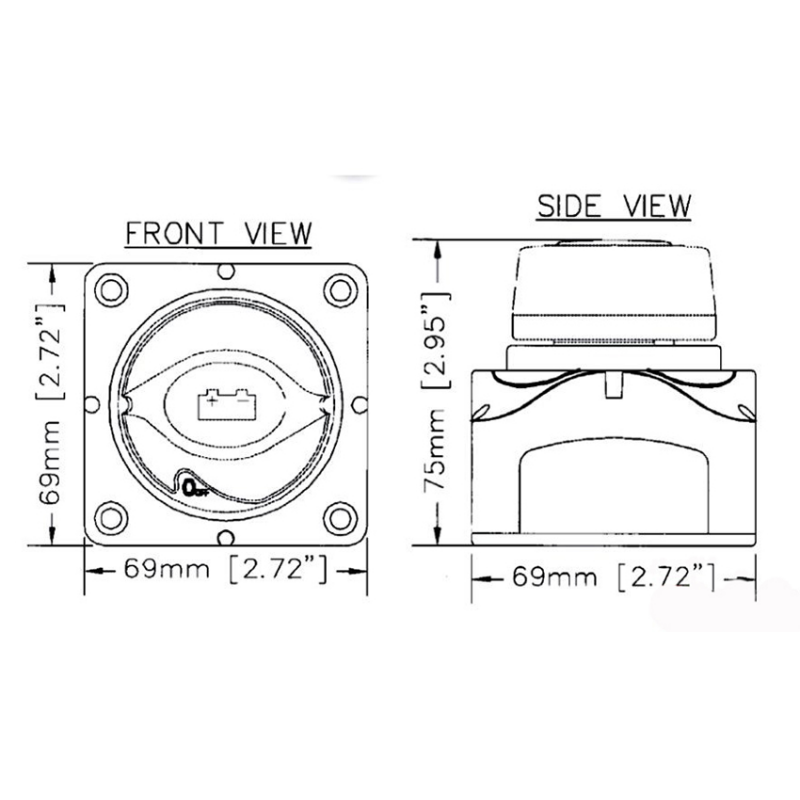 Deviatore Stacca batteria BEP con sistema brevettato permette il montaggio modulare di più interruttori. La manopola non può essere rimossa nelle posizioni 1-2 e OFF, ma solo ruotandola in senso antiorario di 45°. Montaggio in piano o ad incasso (foro Ø mm. 52). 200 AMP in servizio continuo, 1000 AMP di spunto.