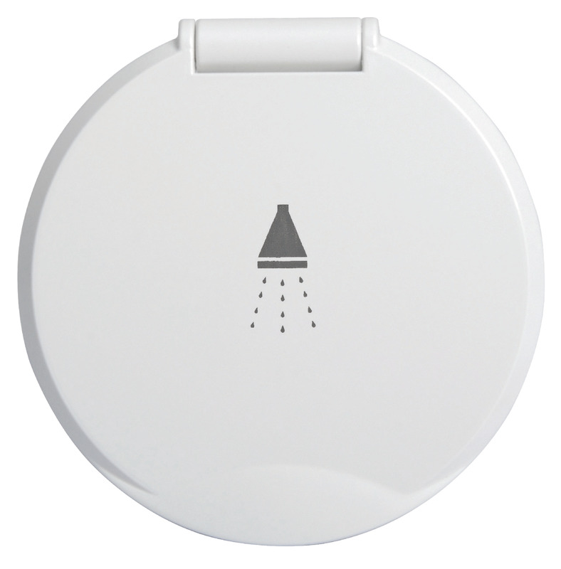 Doccia in acciaio inox, vano di alloggiamento bianco in ASA UV resistente.