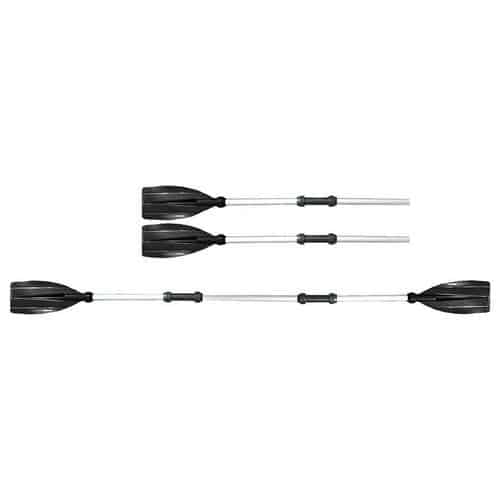 Doppia pagaia divisibile in alluminio anodizzato con pale in plastica, può formare una o due pagaie, oppure una pagaia con due pale per kayak.
