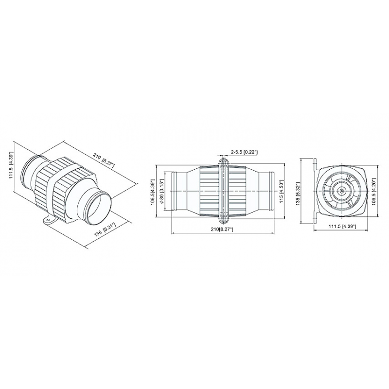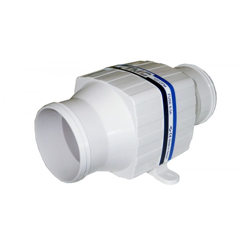 Elettroventilatore in ABS bianco per la ventilazione e laspirazione nelle cabine e nei vani motore. Alimentazione 12V, assorbimento 4,5 Amp. Portata 168 mc/ora, Ø entrata/uscita mm. 80. Dim. mm. 210 x 107 x 112 H