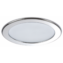 Faretto stagno IP40 ad alta luminosità ( 380 Lumen ), luce bianca calda, con cornice circolare in acciaio inox AISI 316 lucido. Sensibile alla polarità. Fissaggio con molle.