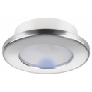 Faretto stagno IP66 ad 1 LED ( 100 Lumen ) ad alta luminosità, luce bianca calda con cornice circolare in acciaio inox AISI 316 lucido.Pulsante interruttore e dimmer touch. Sensibile alla polarità. Fissaggio con viti (non incluse)