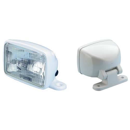 Faro per roll bar orientabile in senso verticale, in ABS bianco con bulbo a doppio filamento.