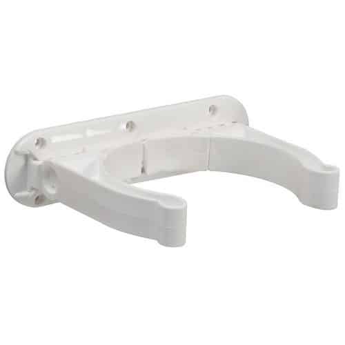 Sistema di fissaggio a parete per le bombole da sub, universale. Viene fornita una base in nylon a slitta, da fissare a parete, nella quale si inserisce la staffa portabombola che é regolabile in larghezza e pieghevole, il tutto é fabbricato in polipropilene bianco.