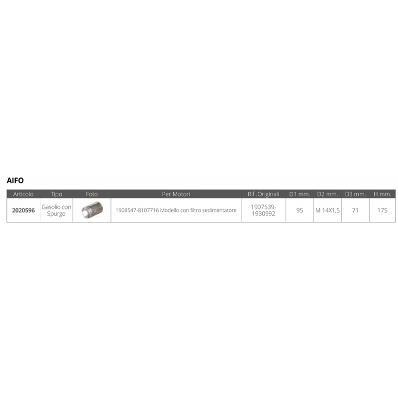 | Tipo | FILTRO GASOLIO AIFO LOMBARDINI |